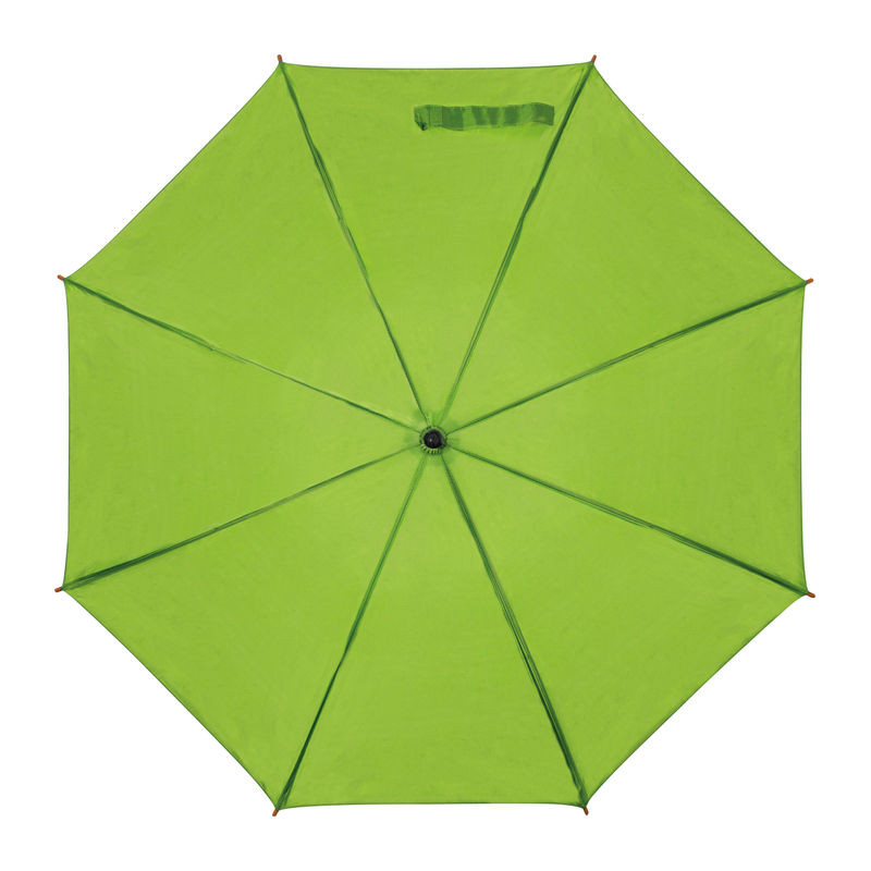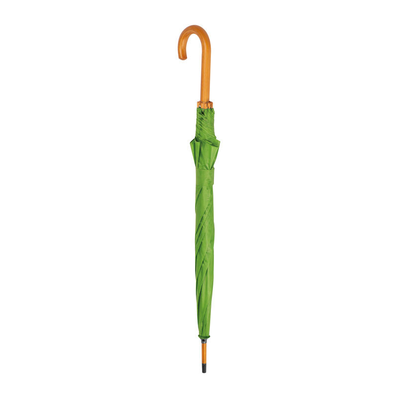 Favázas automata nyitású esernyő hajlított fa fogantyúval és fa csúccsal.