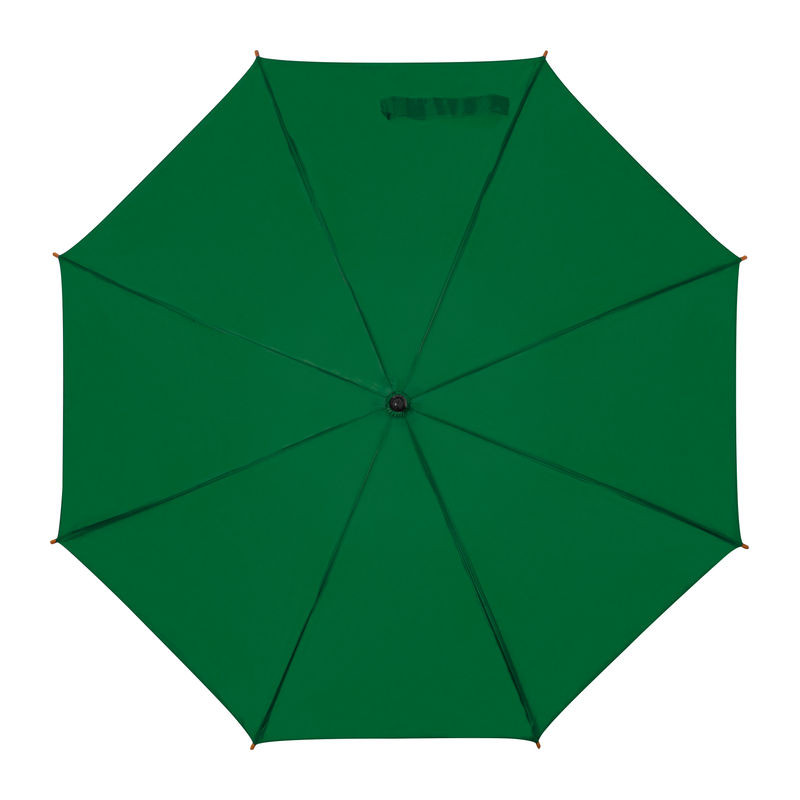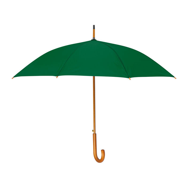 Favázas automata nyitású esernyő hajlított fa fogantyúval és fa csúccsal.