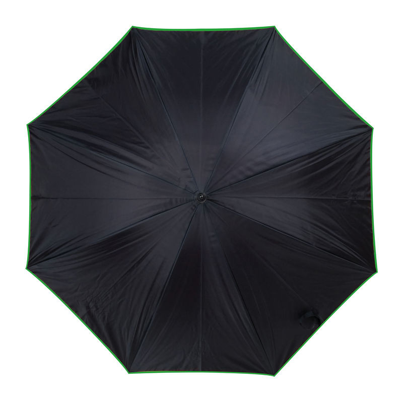 Fémvázas luxus esernyő dupla poliészter erősítéssel, kívül fekete, belül pedig színes, UV védelemmel.