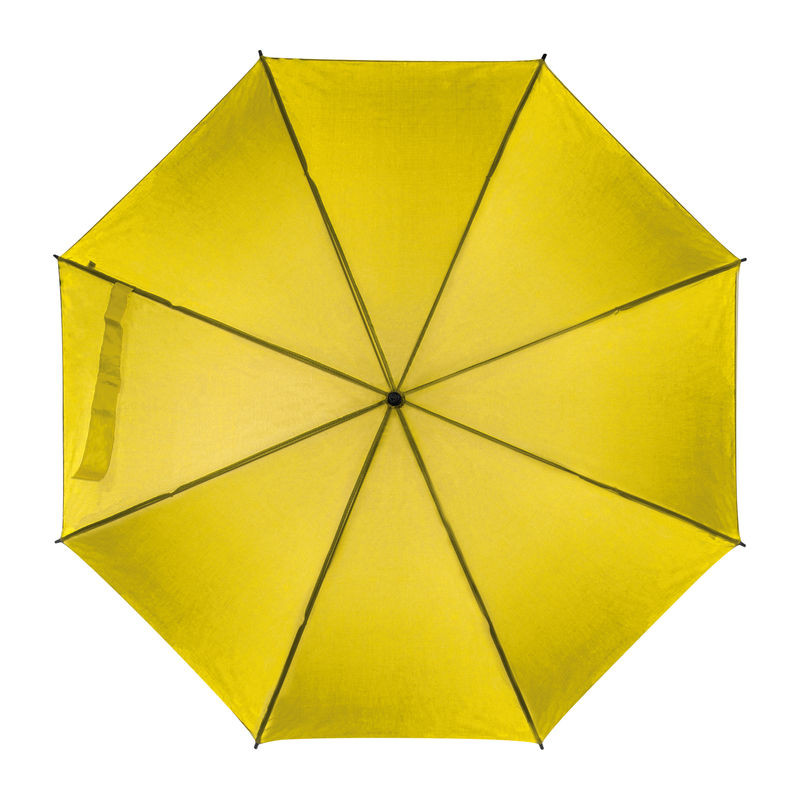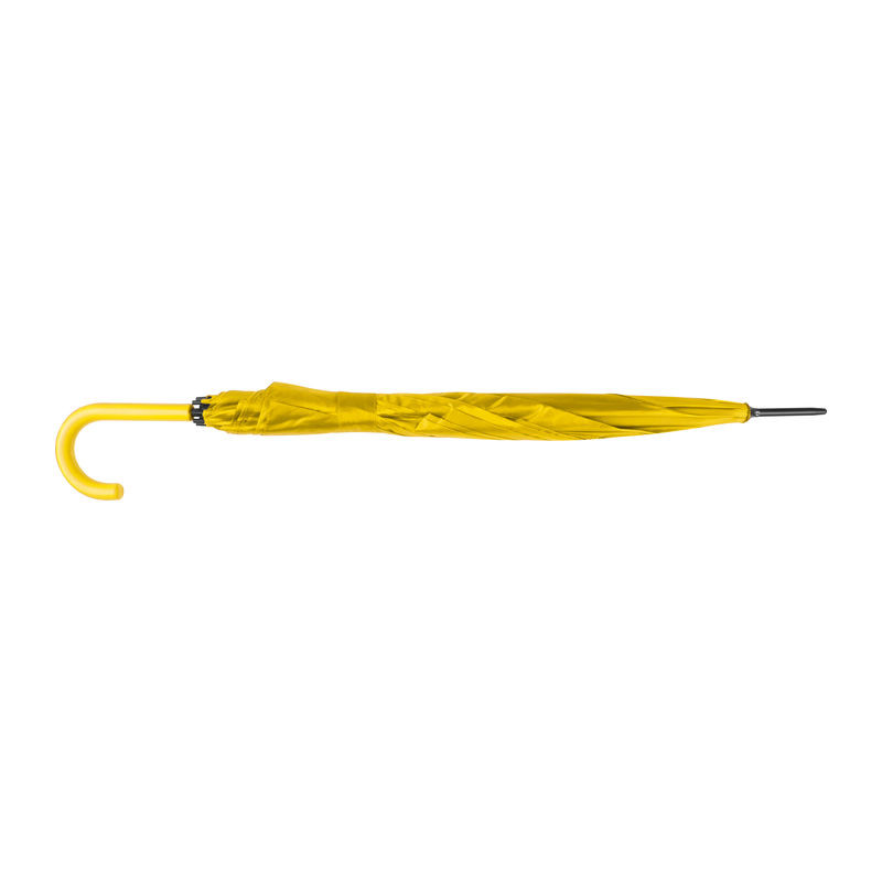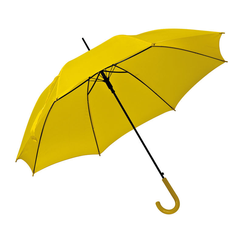 Automata nyitású esernyő, hajlított műanyag nyéllel és fém csúccsal, sokféle színes árnyalatban.