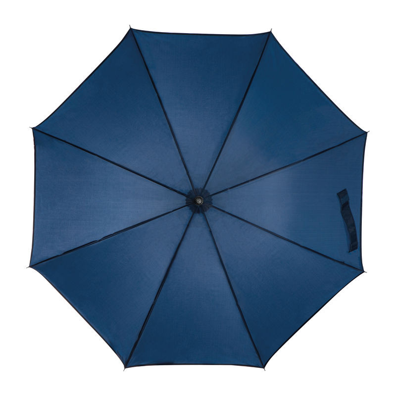 Automata nyitású ernyő alumínium vázzal, fém nyitógombbal és gumírozott, hajlított fogantyúval.