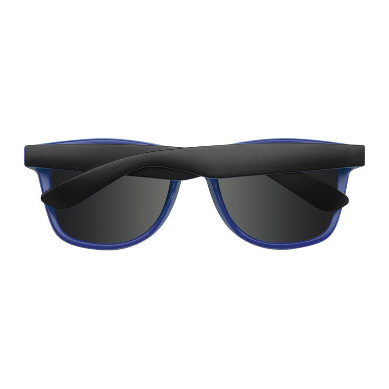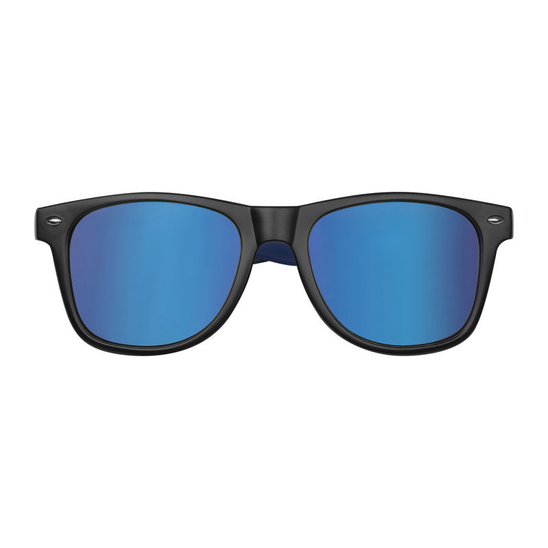 Stílusos műanyag napszemüveg, kétszínű kerettel és tükröződő lencsékkel, UV400 szűrővel, 3-as kategóriájú védelemmel.