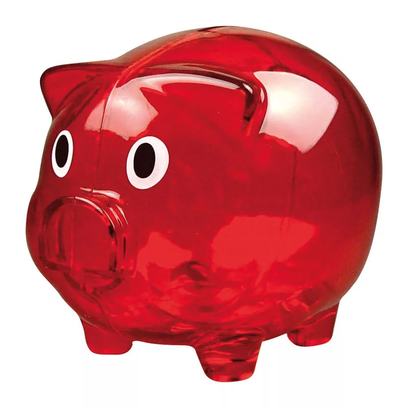 Klasszikus műanyag malacpersely, vidám áttetsző színekben, nem csak gyerekeknek.