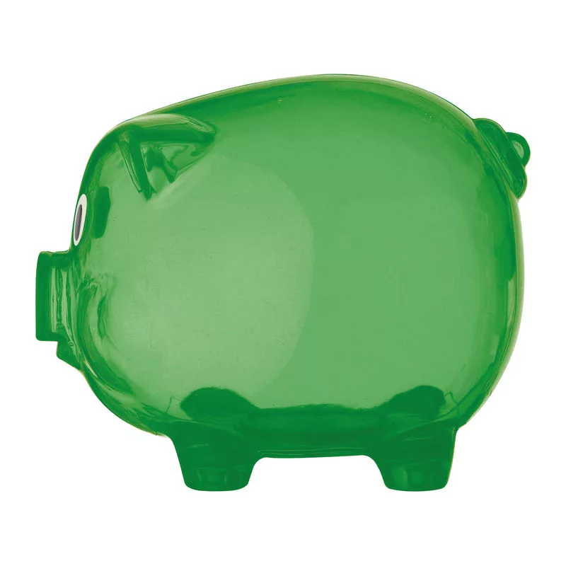 Klasszikus műanyag malacpersely, vidám áttetsző színekben, nem csak gyerekeknek.