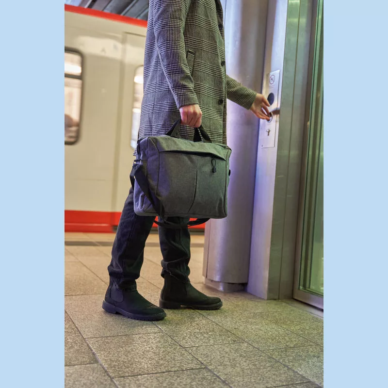 Divatos 600D snow-poliészter anyagú prémium laptoptáska, fekete cipzárral és elülső zsebbel. Dokumentum - vagy konferenciatáskaként is kiválóan használható! Belső tépőzáras laptop rekesszel, hátulján bőröndre rögzíthető pánttal.