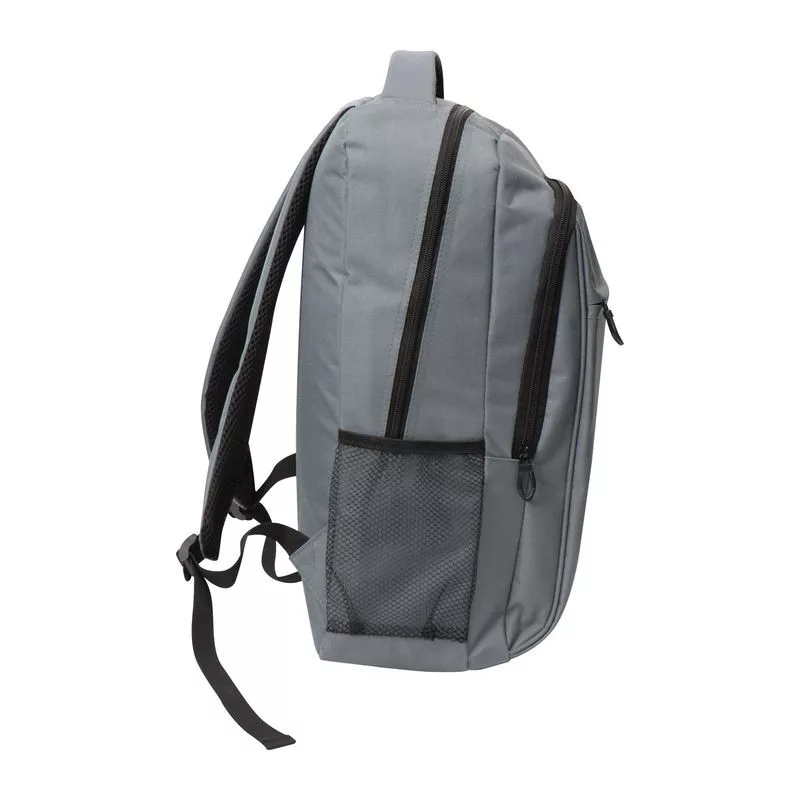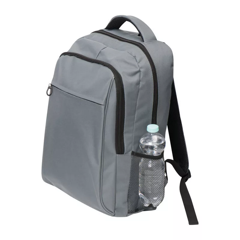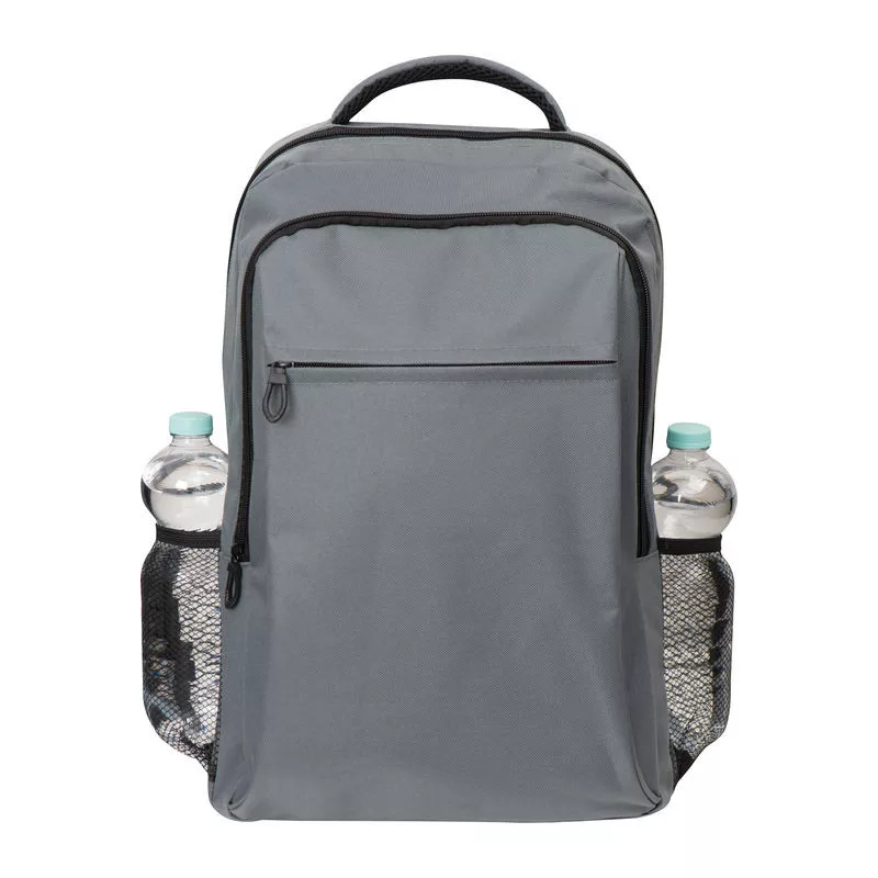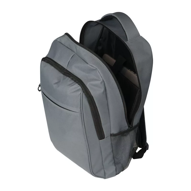 600x300D poliészter anyagú laptop hátizsák, két oldalsó, egy elülső zsebbel és cipzárral.