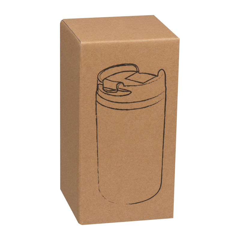 250 ml kapacitású fém duplafalú termoszbögre, csavaros tetővel, zárható ivónyílással.