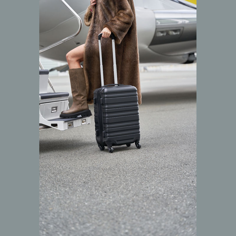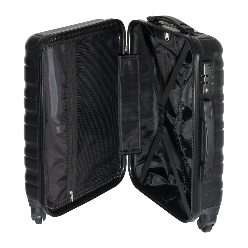 Robusztus gurulós kézipoggyász kemény felülettel és sok belső rekesszel, TSA zárral.