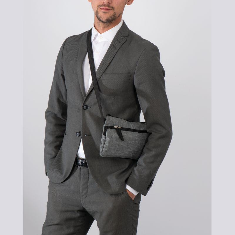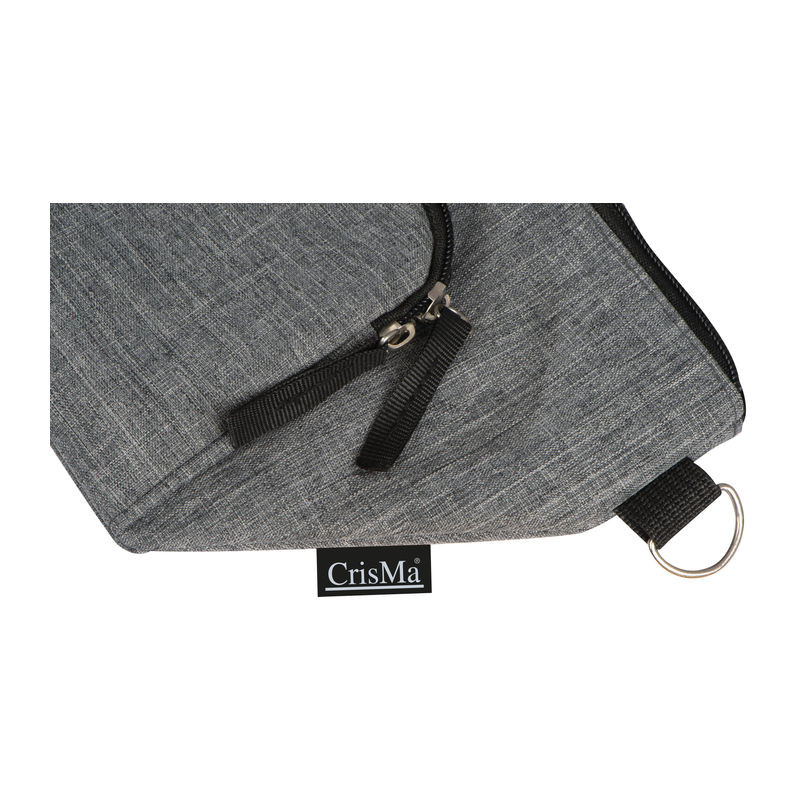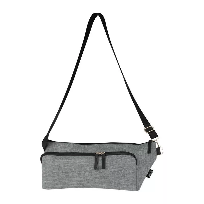 300D poliészter válltáska, karabinerrel rögzített hosszú vállpánttal, biztonságos cipzáras zsebekkel. A kulcsok biztonságos tárolását a belső zsebbe bevarrt akasztó biztosítja.