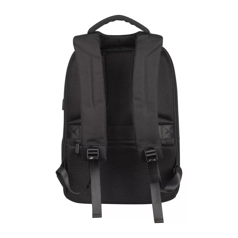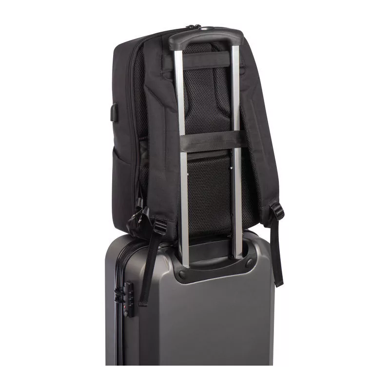 Kiváló minőségű vízhatlan táska, 65% nylonból és 35% poliuretánból, lopás elleni védelemmel, USB porttal, megerősített, szellőző vállpánttal. A hátizsák rengeteg tárolóhelyet kínál, külön laptop rekesszel 15,6'-méretig, gurulós bőröndre is rátehető.