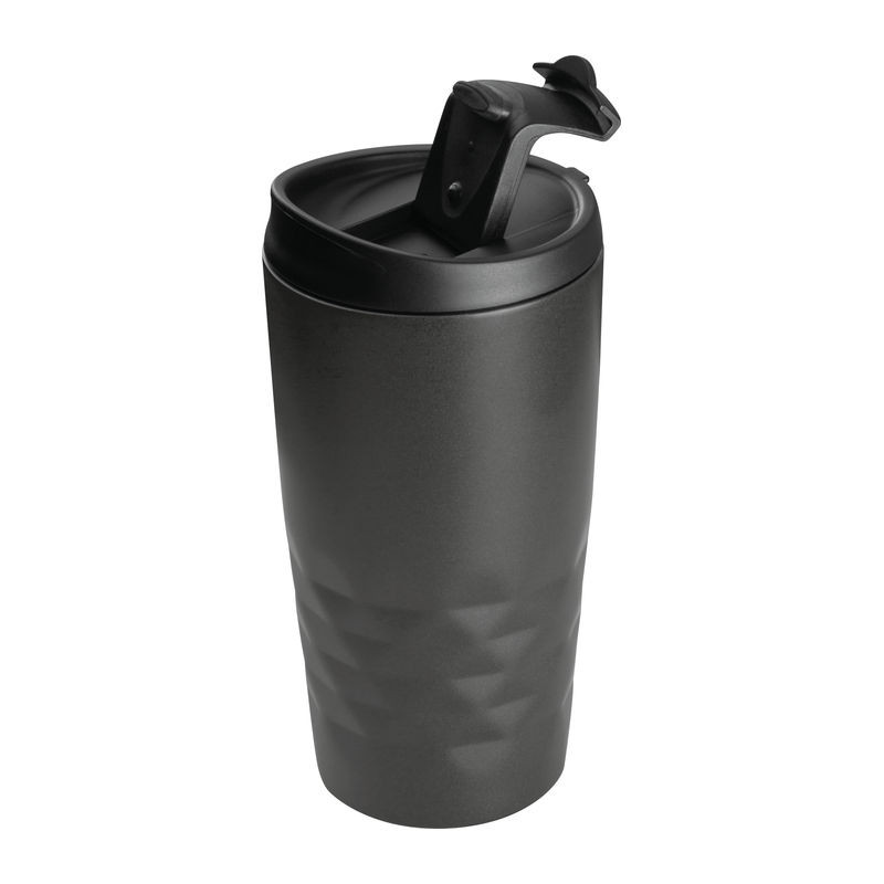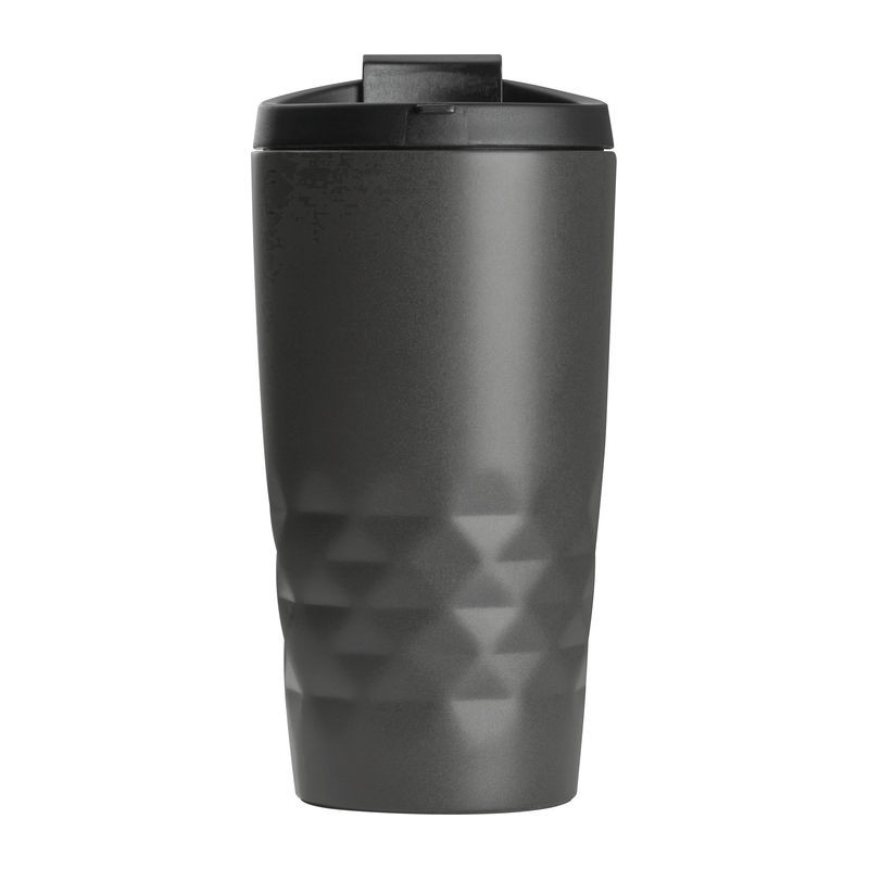 Duplafalú, szivárgásmentes, rozsdamentes acélból készült vákuumszigetelt termoszpohár, 300 ml űrtartalommal és zárható ivó nyílással.