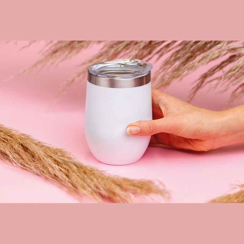 Duplafalú vákuumszigetelt pohár rozsdamentes acélból, 300 ml űrtartalommal és átlátszó ivókupakkal.