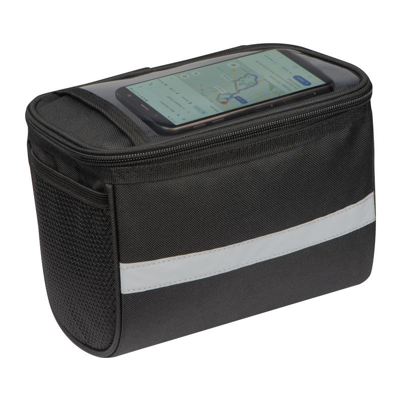 Kormányra rögzíthető kerékpártáska, egy nagy fő rekesszel, okostelefontokkal, amely a fólián keresztül is működik érintéssel. Az elején egy fényvisszaverő csík is felhívja a figyelmet a biciklisre.