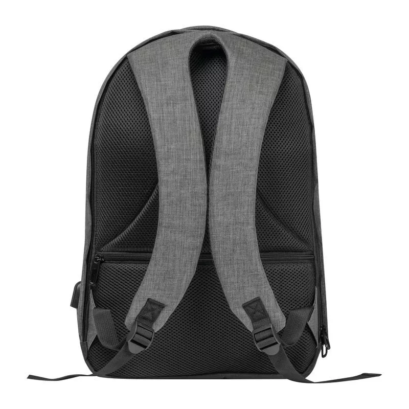 600D poliészter hátizsák USB porttal, belső tépőzáras laptop rekesszel, lopásvédett zsebbel, párnázott szellőzőnyílásokkal ellátott vállpánttal.