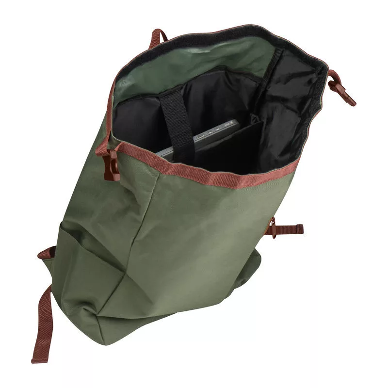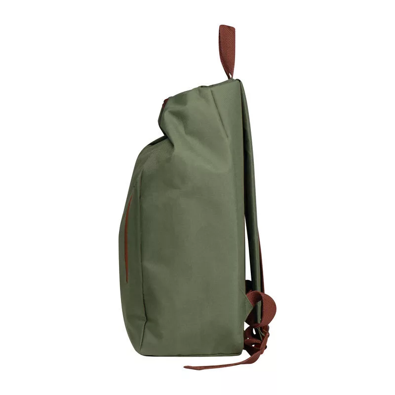 Trendi RPET anyagból készült hátizsák, párnázott vállpánttokkal, első cipzáras rekesszel, oldalsó zsebbel, belső laptop rekesszel, felül csattal és cipzárral záródik.