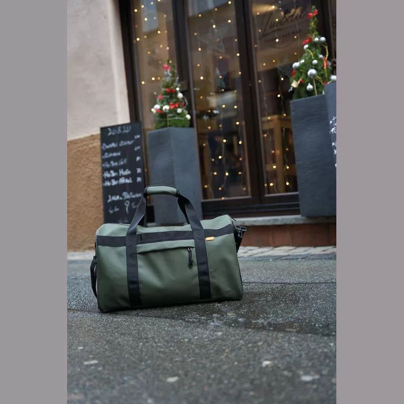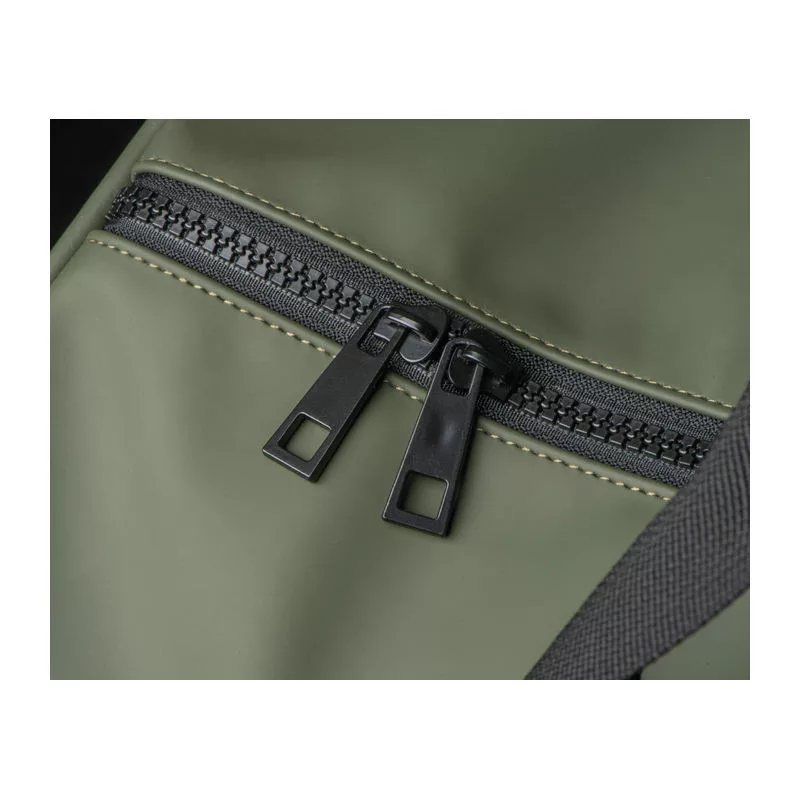 Vízlepergető PU anyagból készült nagyméretű táska két különálló külső rekesszel, 38 literes kapacitással. A vállpánt levehető. Ideális sport- vagy utazótáskaként.