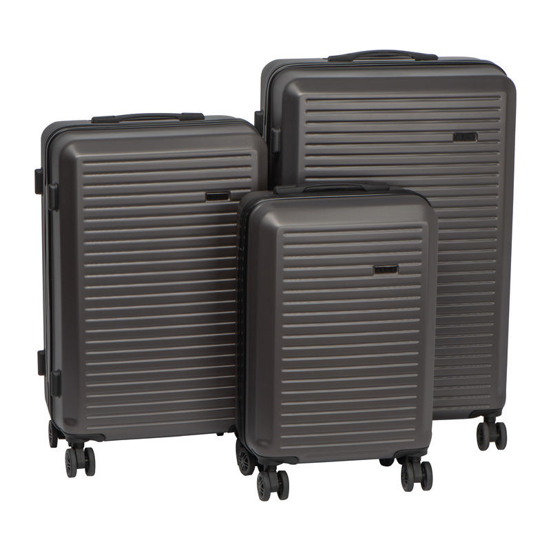 3 gurulós bőröndből álló készlet, amely egy kézipoggyászból (20'' - 50,8 cm), egy közepes bőröndből (24" - 60,96 cm) és egy nagy utazó bőröndből (28" - 71,12 cm) áll, TSA zárral. Gravírozni a hozzá külön rendelhető 90868 cikkszamú bilétát van lehetőség.