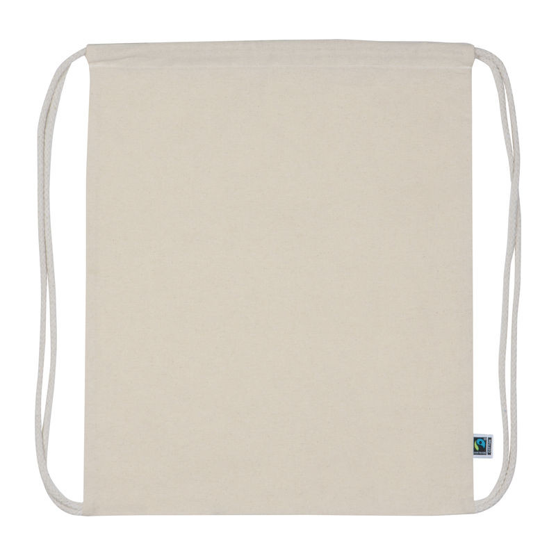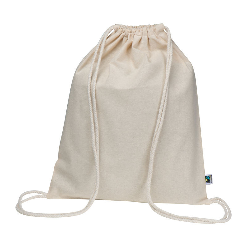 Fairtrade vászon hátizsák összehúzó zsinorral (180g/m²) Fairtrade címkével.