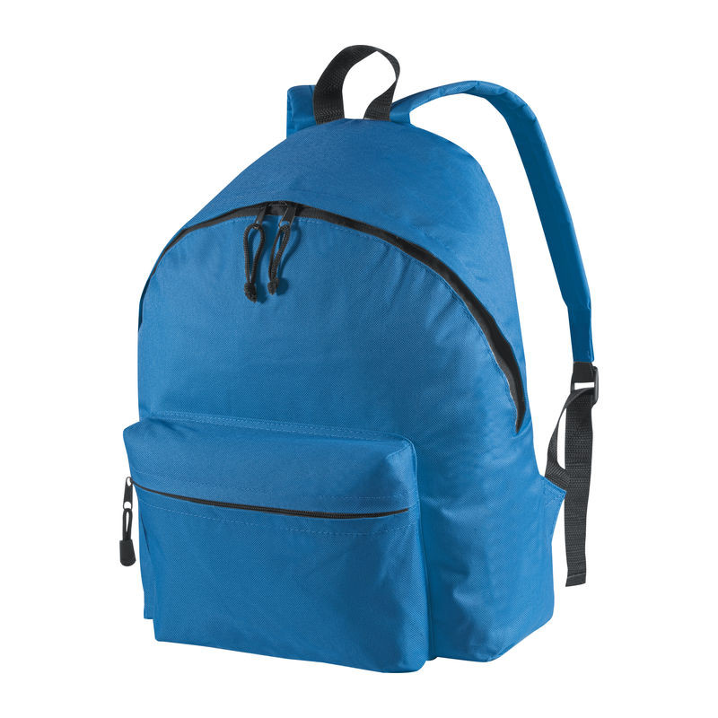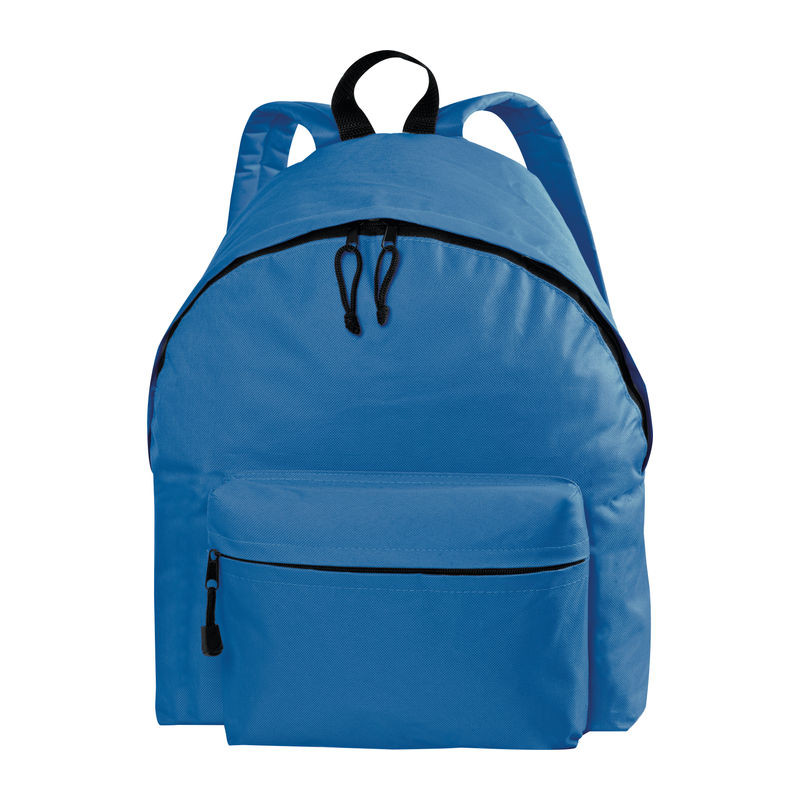 Nagyméretű, strapabíró hátizsák polyesterből, nagy első zsebbel, kipárnázott vállpánttal, és akasztóval.