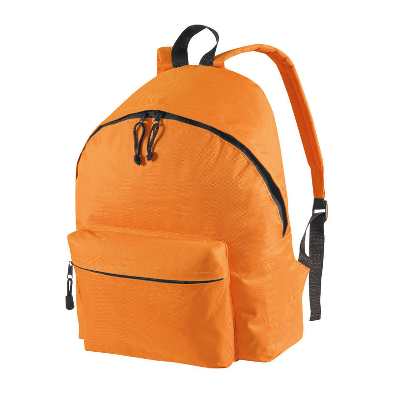 Nagyméretű, strapabíró hátizsák polyesterből, nagy első zsebbel, kipárnázott vállpánttal, és akasztóval.
