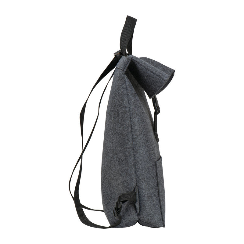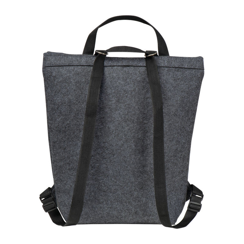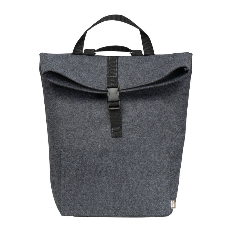 Nagy hátizsák RPET filcből fedéllel és elülső zsebbel.