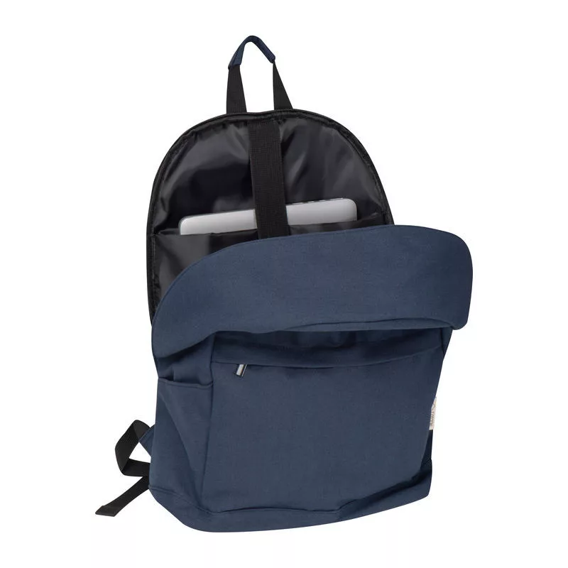 Újrahasznosított pamutból készült hátizsák. Párnázott vállpántokkal és hátrésszel, valamint egy belső laptop rekesszel. A hátsó részbe egy további cipzáras rekeszt találunk, amely extra védelmet nyújt a lopás ellen.