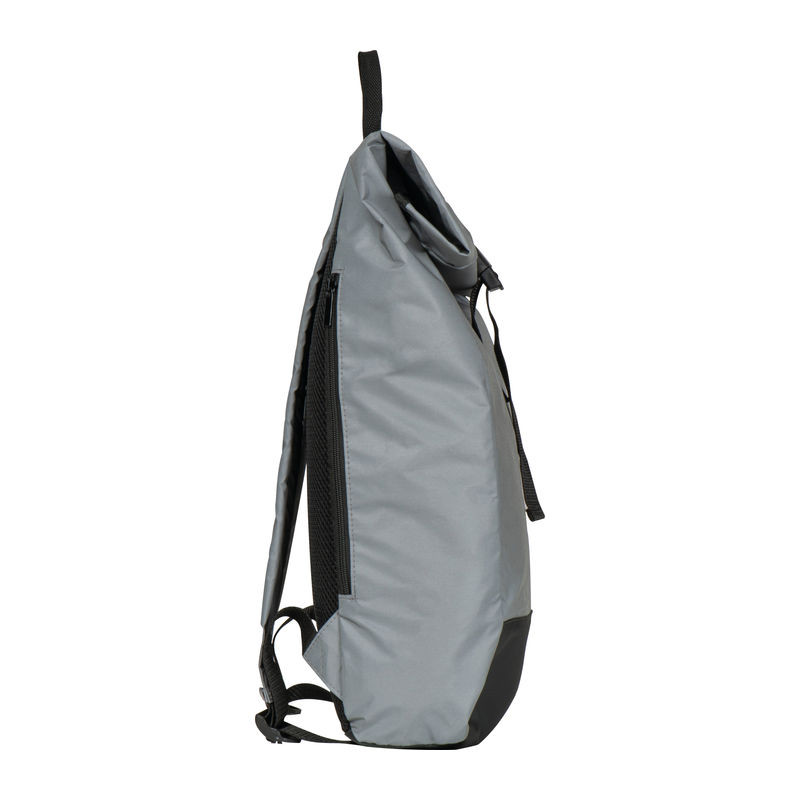 Nagy futár hátizsák fényvisszaverő külső anyaggal, párnázott hátrésszel és további oldalsó cipzáras zsebbel.