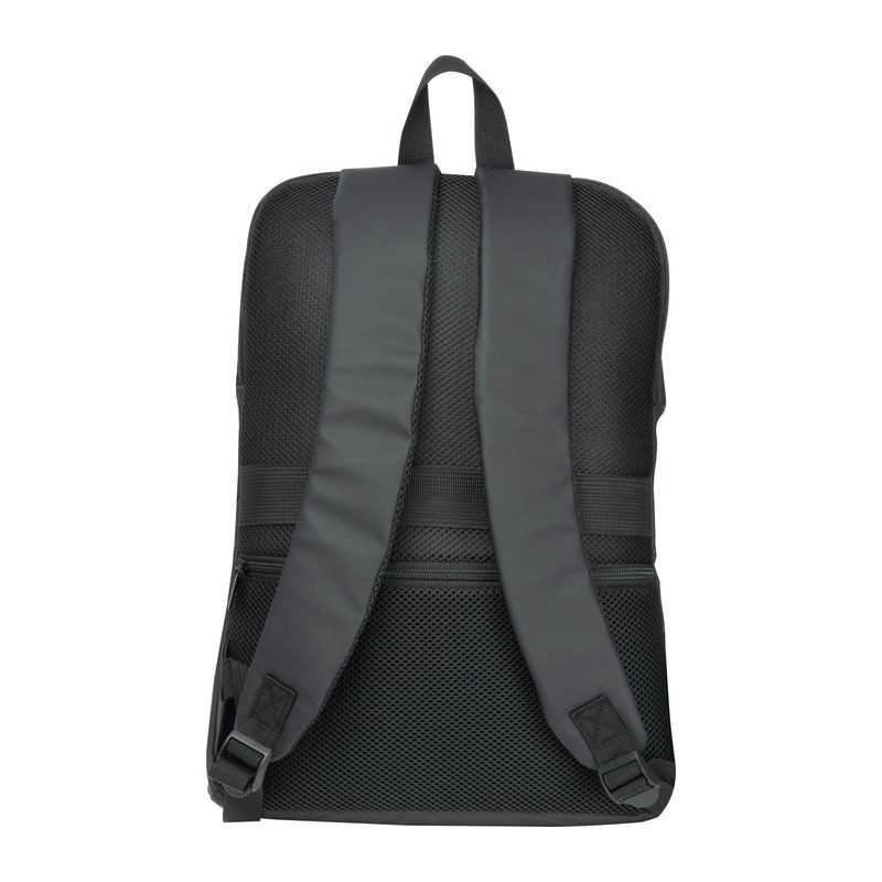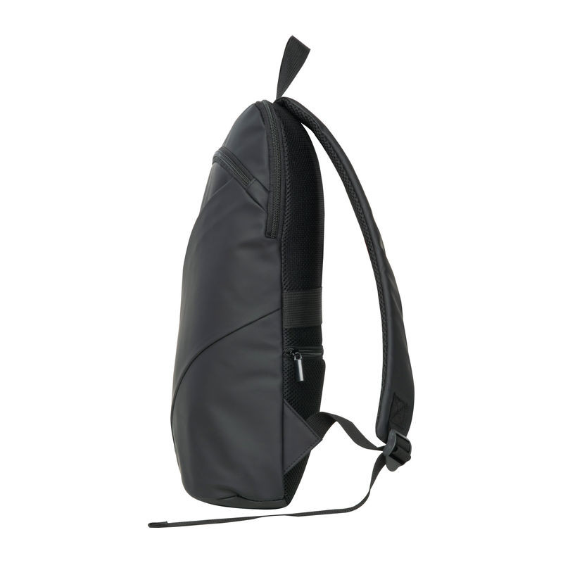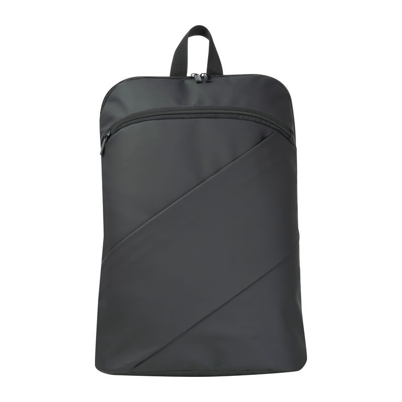 Műbőr hátizsák két ferde, fekete fényes cipzárral az elülső oldalon, hordozó füllel, két kényelmes vállpánttal és lopás elleni zsebbel.