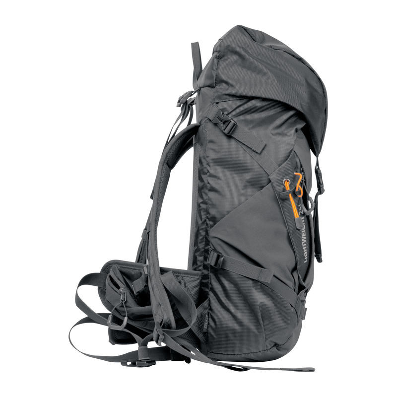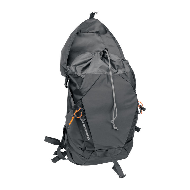 Masszív túrahátizsák ergonomikus csattos övrésszel, 25 literes kapacitással PA, PES és EVA anyagokból készült, esővédő zsebbel az alján és a hátpárnáján is. Könnyű súlyával és vizállóságával kiváló kiránduláshoz.