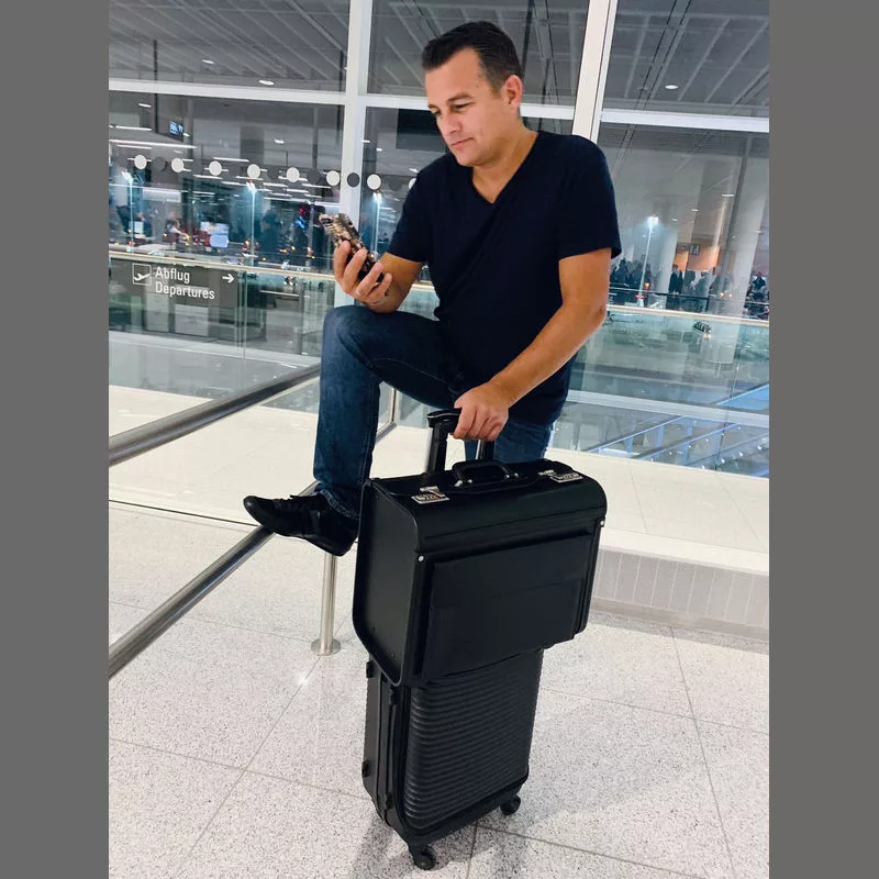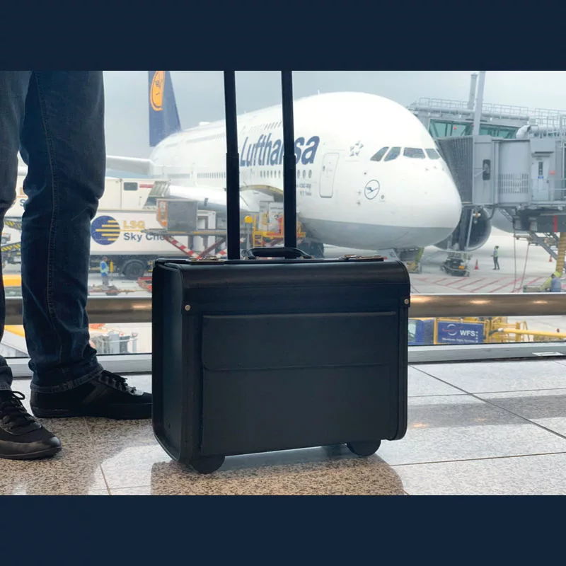 CrisMa elegáns, fekete színű, műbőr, kerekes pilótatáska, kényelmes kialakítású hosszú fogóval, nagy belső rekesszel.