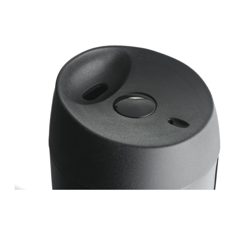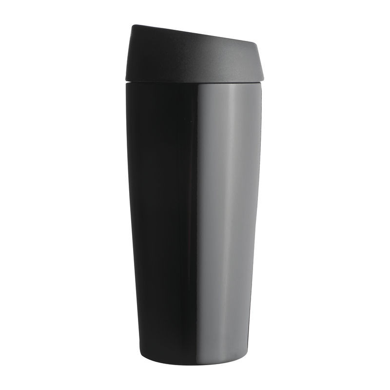 Elegáns 400 ml űrtartalmú termoszpohár, mely a tetején lévő gombbal nyitható. Kívül-belül kiváló minőségű rozsdamentes acélból készült.