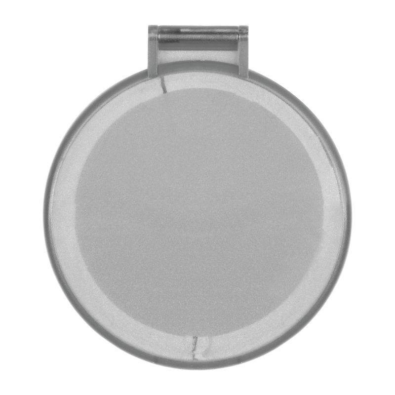 Kerek, hordozható kozmetikai zsebtükör matt felületű műanyagból.