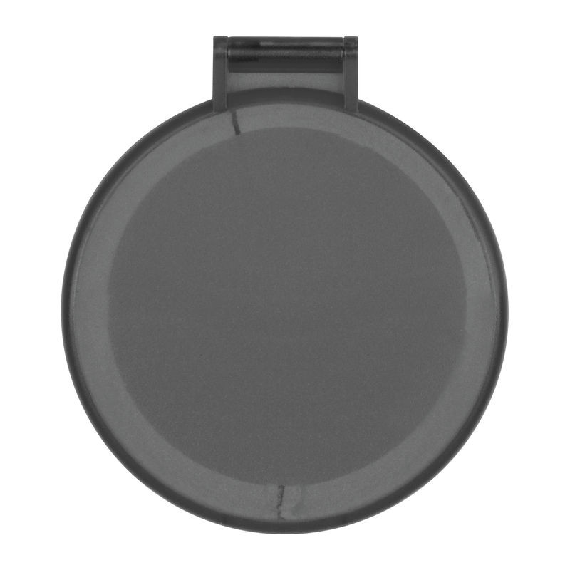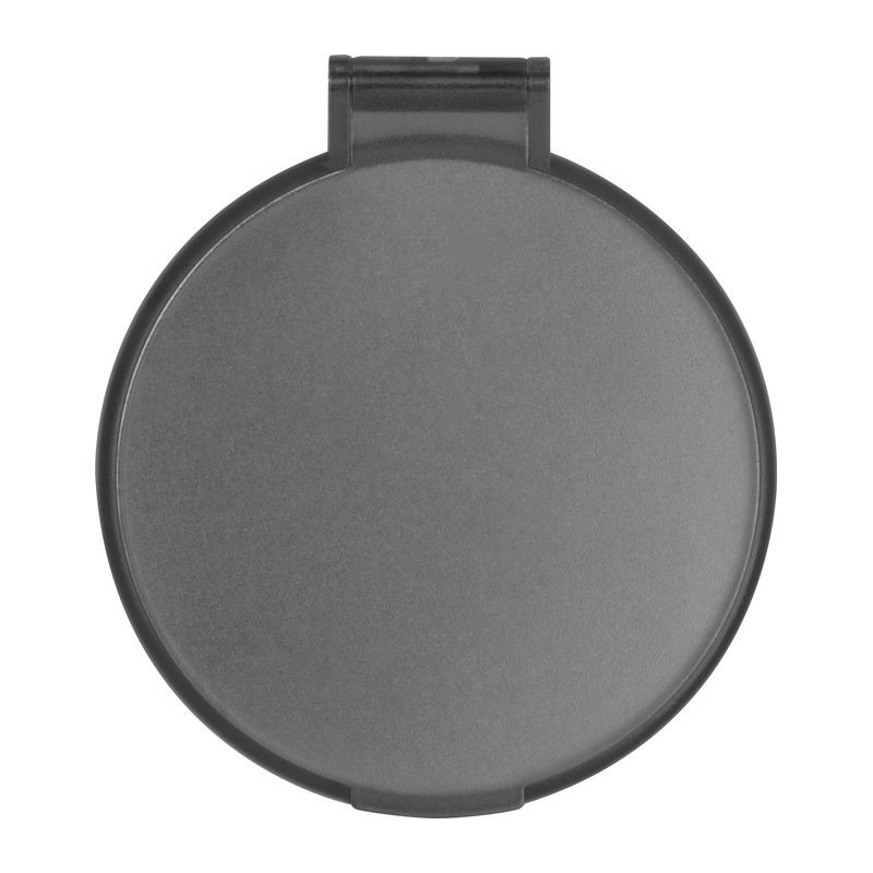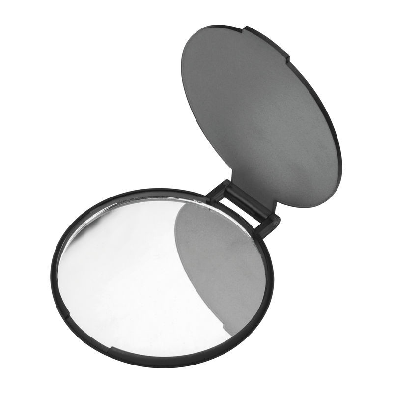 Kerek, hordozható kozmetikai zsebtükör matt felületű műanyagból.