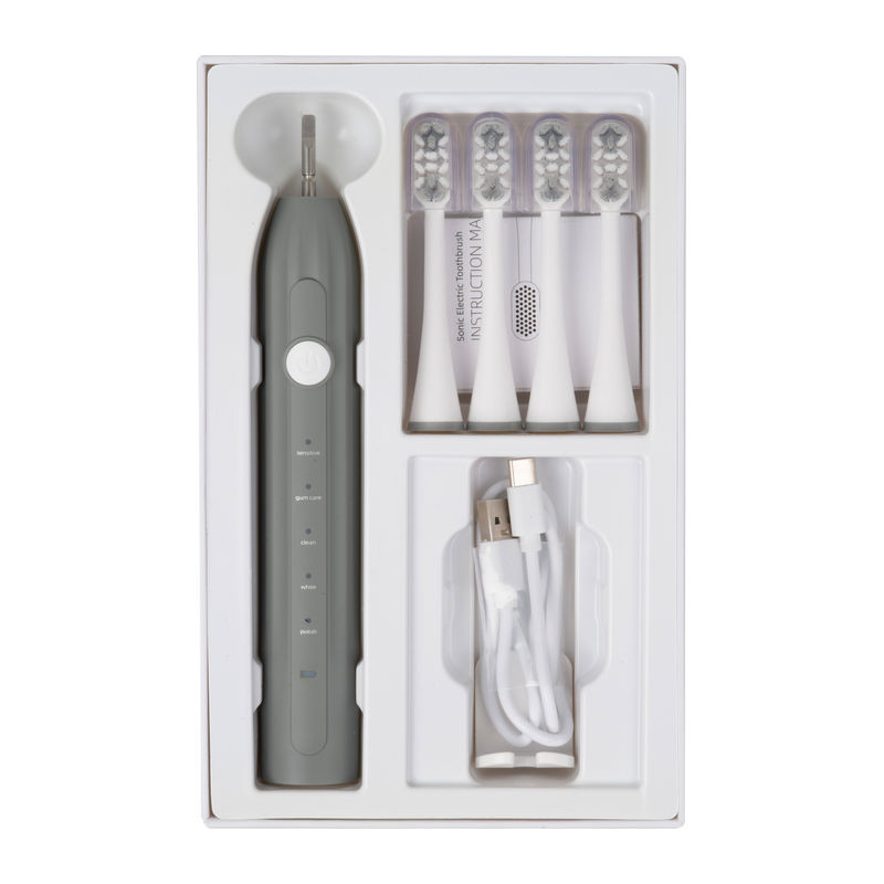 Elektromos fogkefe (200 mAh) 4 pótfejjel és USB-C csatlakozóval, USB-C töltőkábellel a csomagban. 5 különböző tisztítási mód. Utazáshoz ideális.