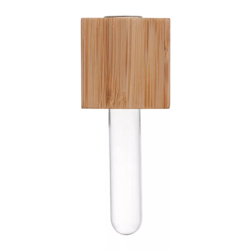 Bambusz hűtőmágnes kisméretű kémcső formájú vázával boroszilikát üvegből virágok számára.