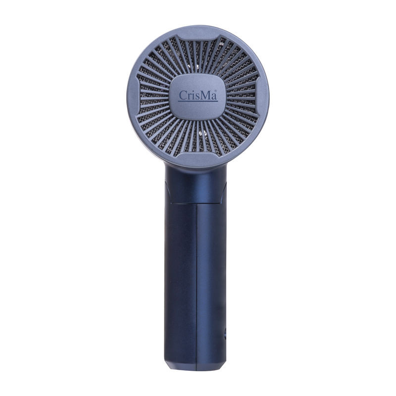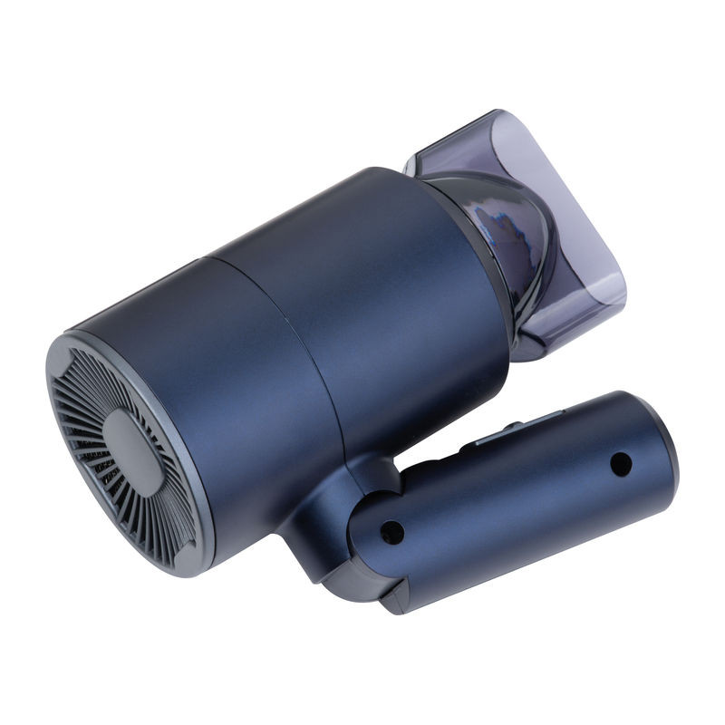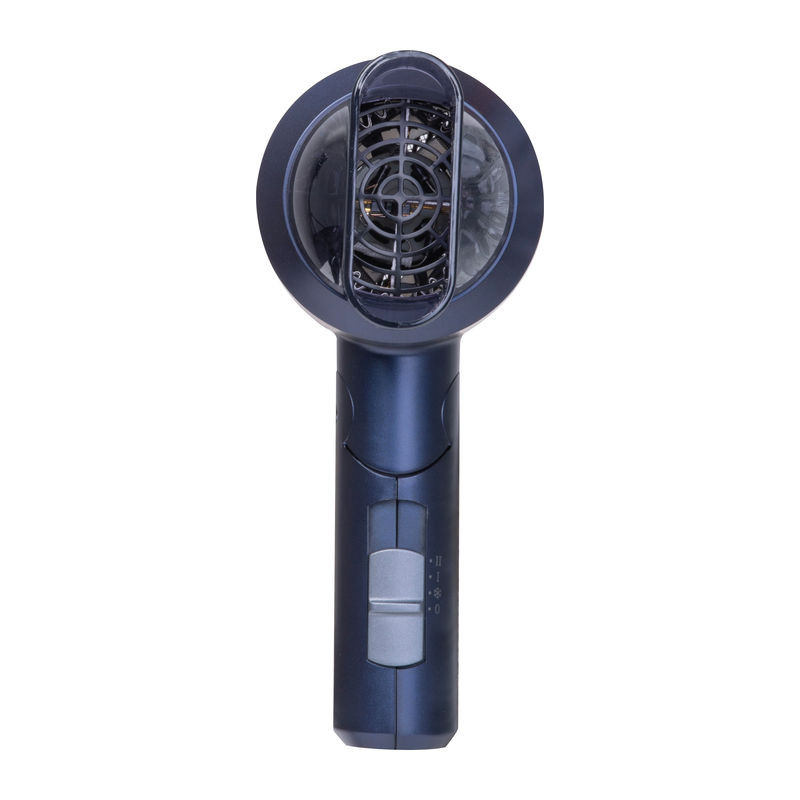 Kompakt, kékes fém színű utazó hajszárító 1100 wattal és 3 hőfokbeállítással (hideg és 2 meleg fokozat).