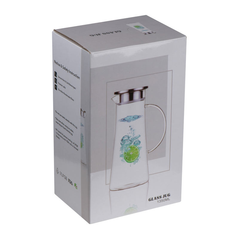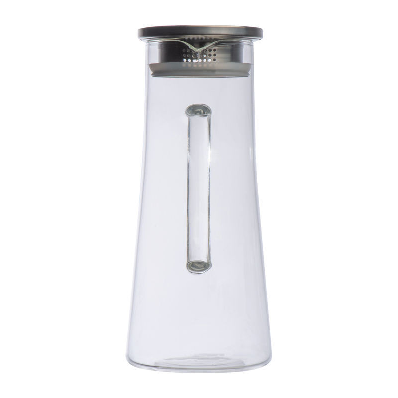 1350 ml űrtartalmú vízeskancsó rozsdamentes acél tetővel, mely két különböző lehetőséget rejt magában: egy szűrővel és egy nagyobb nyílással rendelkezik,az üvegkancsó így bármilyen folyadékhoz ideális választás.