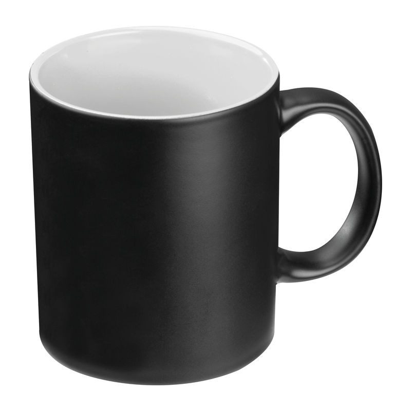 Kerámia bögre fekete külsővel és színes belsővel, 300 ml-es kapacitással.