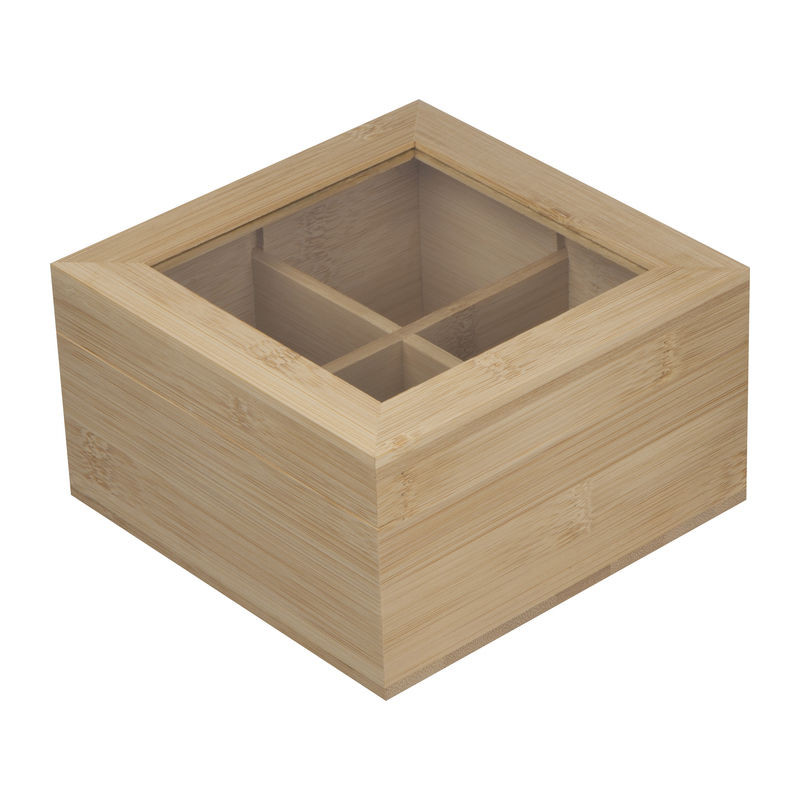 Bambusz teafilter tartó doboz üveg fedéllel, melyben cca 40 filter elhelyezhető. A természetes anyagból következően termékenként szín és mintázat eltérések előfordulhatnak.