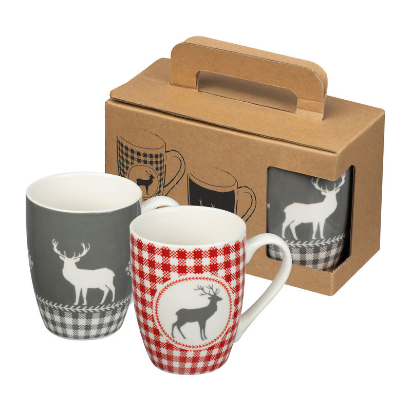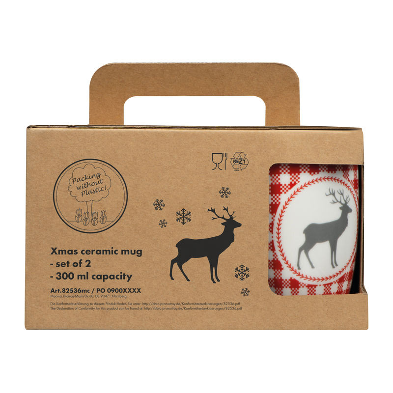 Két részes kerámia bögre szett, karácsonyi motívummal, egyenként 300 ml -es kapacitással. A kifinomult csomagolás jól néz ki és környezetbarát.