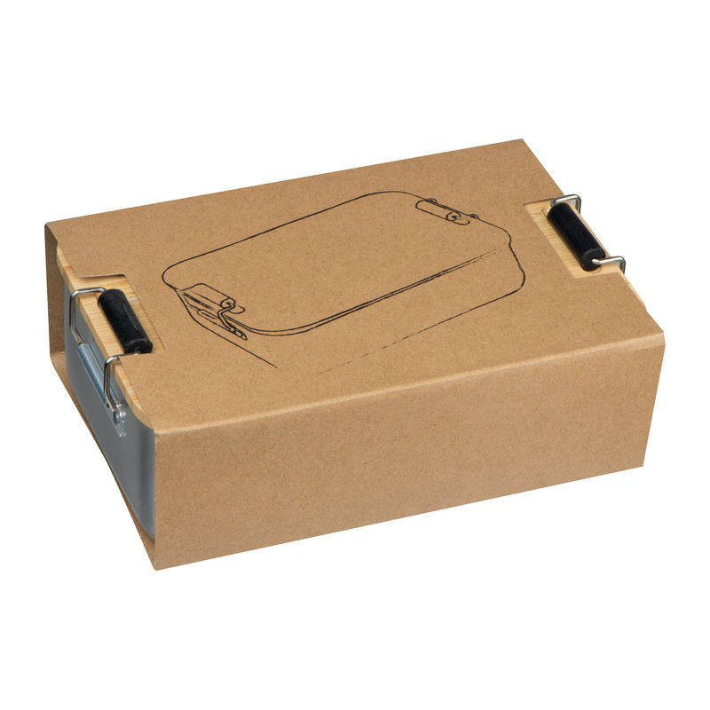 Rozsdamentes acélból készült, stapabíró ételhordó vagy uzsonnás doboz zárható bambusz fedéllel, kétoldalán szorítókonzollal, 1000 ml-es űrtartalommal.