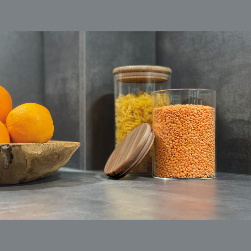 Boroszilikát üvegből készült tárolóedény, bambusz tetővel és szilikon gyűrűvel. Ez a 700 ml-es tárolóedény nem hiányozhat egyetlen konyhából sem.