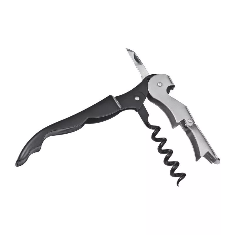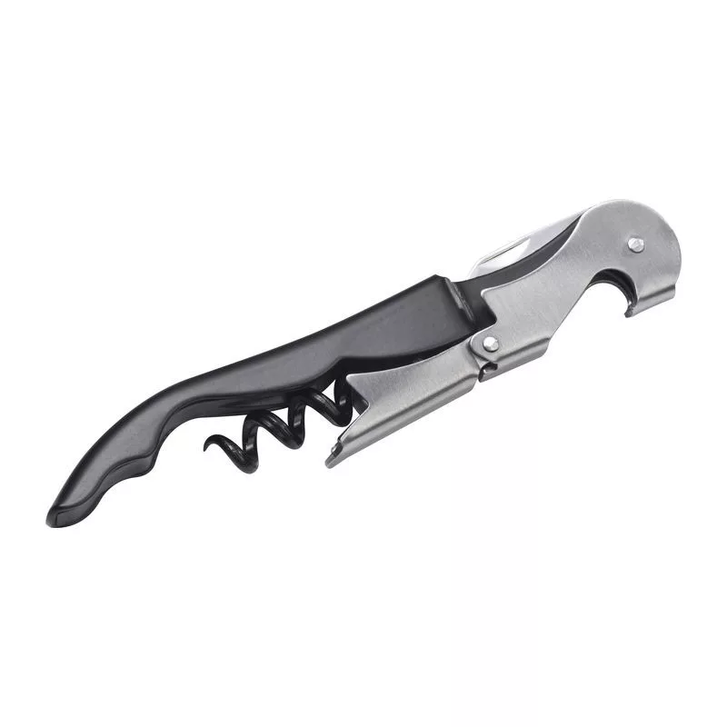 Fémből készült pincérkés sörnyitóval, fóliavágóval és két szintes dugóhúzóval.