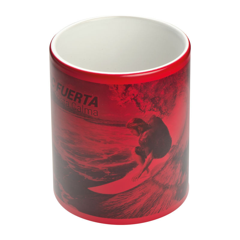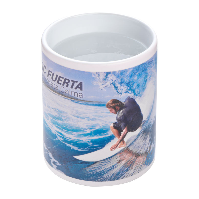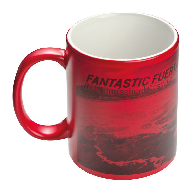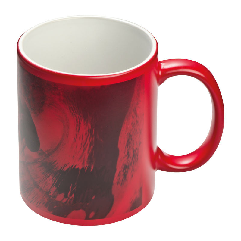MAGIC hőre váltós szublimációs bögre 300 ml űrtartalommal: hideg állapotban a nyomat eltűnik a színes lakkréteg alatt. Forró folyadékkal feltöltve a nyomat megjelenik.