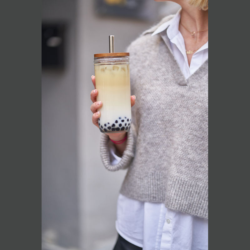 Ivópohár bambuszfedéllel, rozsdamentes acél szívószállal, 650 ml űrtartalommal. Ideális bubble teához vagy kávéhoz, illetve bármilyen rendezvényre.