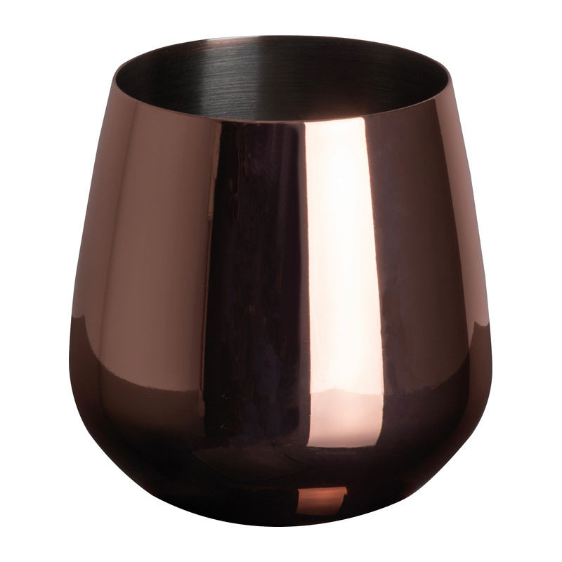 Rozsdamentes acélból készült pohár, fényes, réz bevonattal, sima felülettel, 500 ml-es űrtartalommal. Tökéletes koktélokhoz vagy egyéb italokhoz.