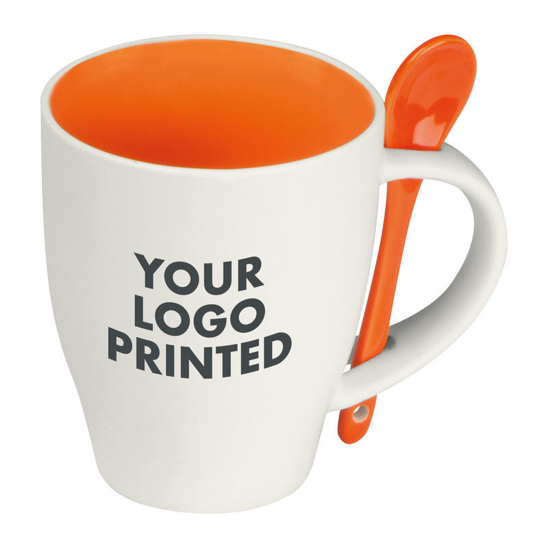 Kerámia bögre kanállal, vidám színekben 250 ml űrtartalommal. Reggeli kávézáshoz, hogy jókedvűen induljon a nap!