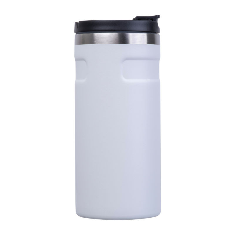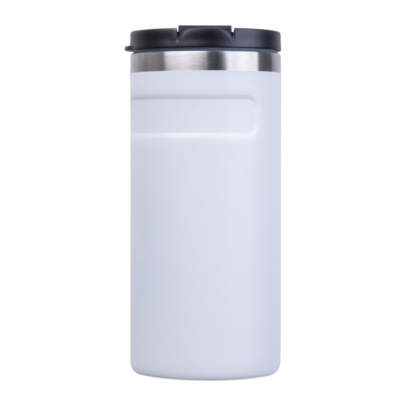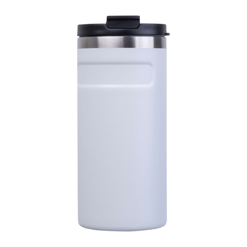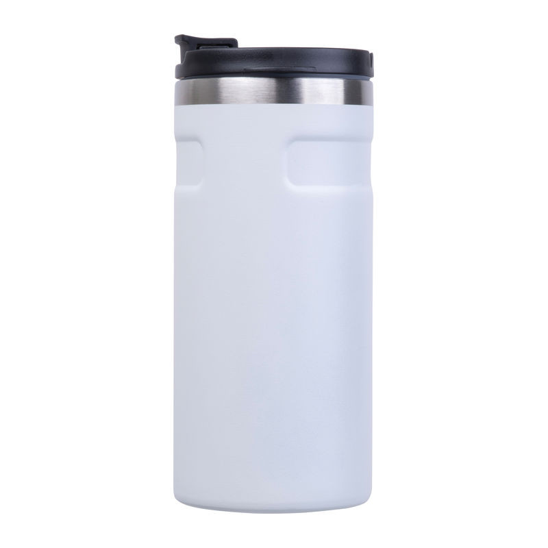 Duplafalú vákuumos utazó pohár újrahasznosított rozsdamentes acélból, szivárgásmentes nyílással, 450 ml kapacitással.