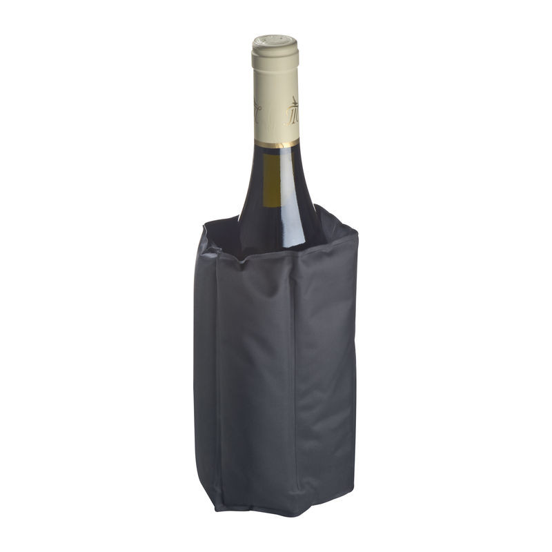 Elegáns, fekete üveghűtő, tépőzárral, beépített, hűtő géllel töltött párnácskákkal, mely nagyban megkönnyíti bármely üveg hűtését.