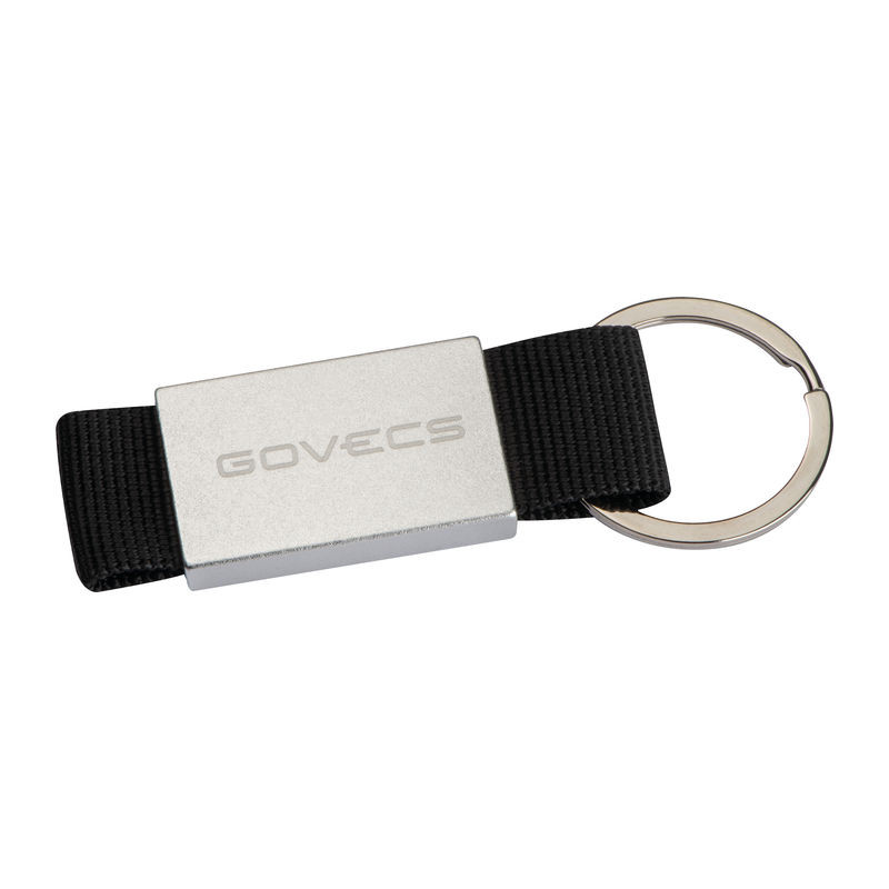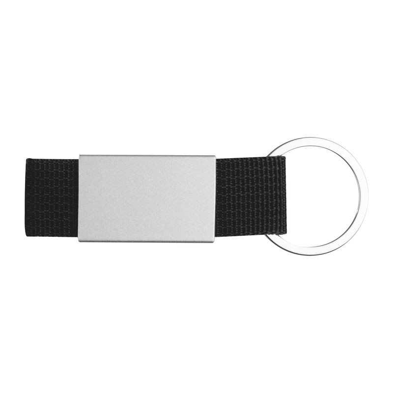 Kulcstartó színes textil szalaggal és fényes fémlemezzel, különböző színekben.
